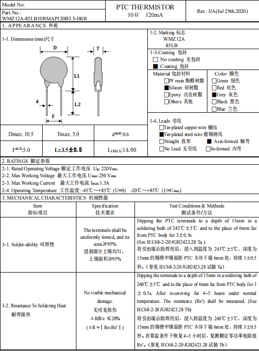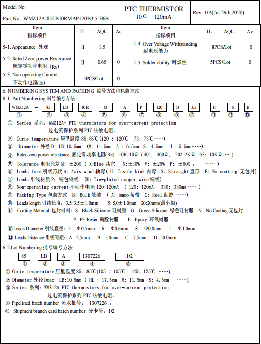 型号:WMZ12A-85LB10RMAP120B3.5-H6B