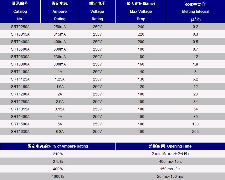 SRT  微型保险丝  圆柱形的   延迟的  反应动作慢的