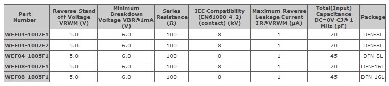 帮助低工作电压终端设备免受静电、浪涌及其他过压损坏。同时,产品满足业界标准,包括IEC, ETSI, Bellcore 1089 and FCC part 68等。